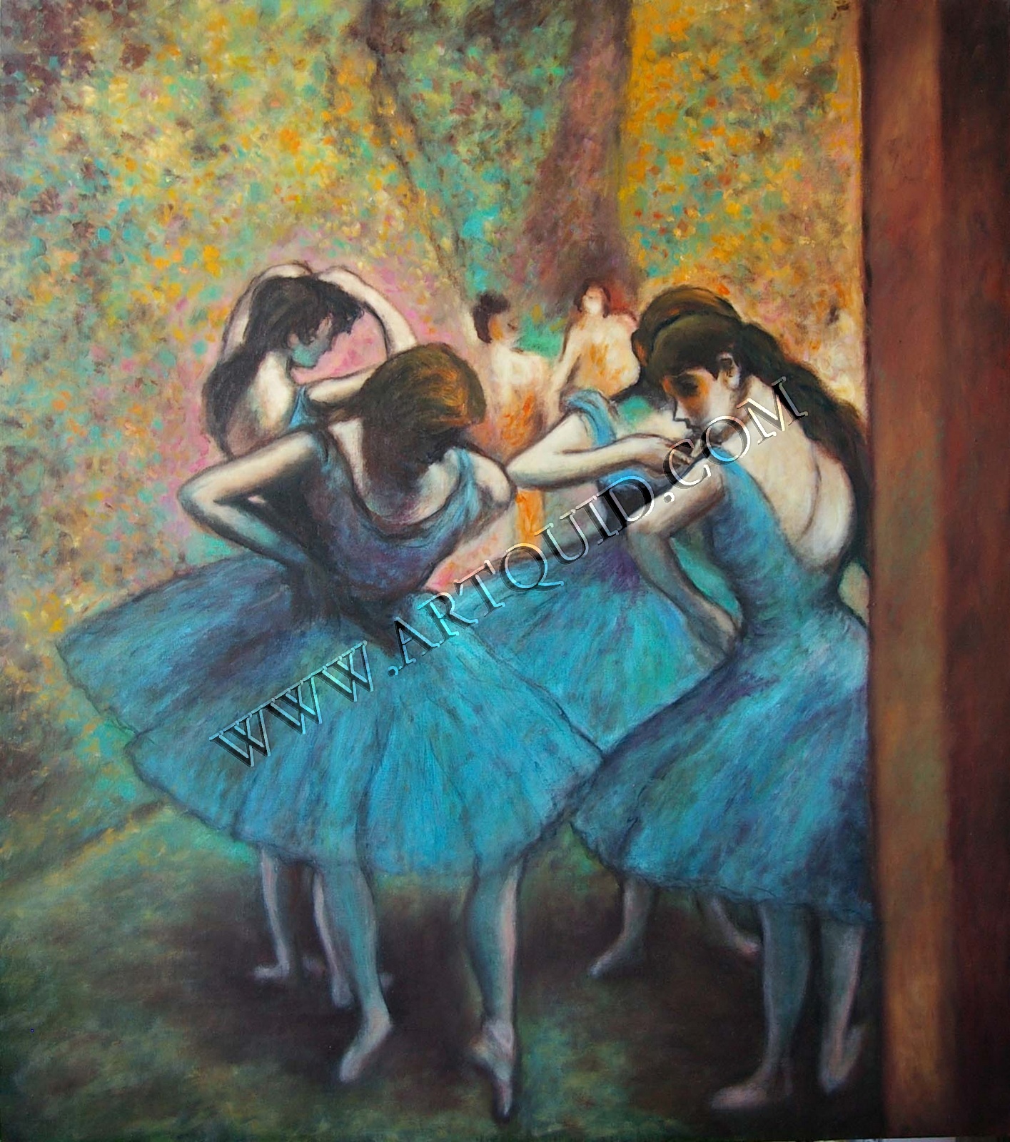 A partir de los años ochenta, Degas realizó numerosas variaciones sobre el tema de las bailarinas; sin embargo, la idea de la mujer estuvo muy vinculada a su vida artística y privada. Degas perdió a su madre cuando contaba apenas trece años. No se casó nunca y no se le conoció ninguna relación amorosa -Mademoiselle Volkonska y Marie Dihau no son más que meras suposiciones-; ante ello el artista comentó en una ocasión: "Hubiera sufrido durante toda mi vida el temor de que mi esposa dijera: Te ha quedado bonita, después de haber acabado una pintura."