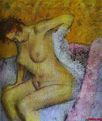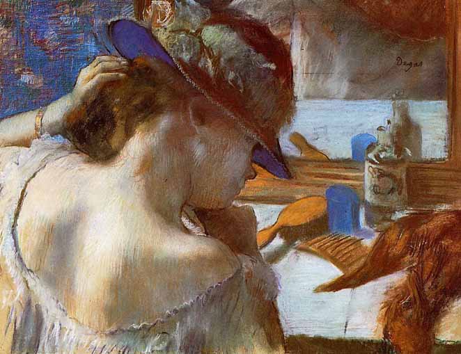 Al margen de las connotaciones misóginas de semejante afirmación, lo cierto es que sus complejas relaciones con las mujeres influyeron notablemente en su arte y propiciaron su curiosidad a través de la mirada, un "voyeurismo" que se manifiesta en esos cuerpos que, en realidad, parecen haber sido robados a la intimidad femenina, mientras las mujeres se preparan para la escena, como en Clase de baile (1872, Museo de Orsay, París), Bailarina sentada frotándose el tobillo izquierdo (1881-1883, Museo de Orsay, París) y Bailarinas entre bastidores (1890, Museo de Orsay, París), o mientras realizan sus aseos cotidianos como en Mujer peinándose (1887-1890, Museo de Orsay, París) o Mujer secándose el pelo al aire libre (1903, Museo de Orsay, París).