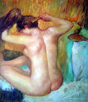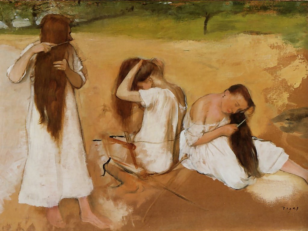 Mujer peinándose es uno de sus más clásicos desnudos. En una versión posterior del mismo tema, Doncella peinando a la señora (1896, National Gallery, Londres), los contornos de la mujer y la criada surgen de un campo cromático rojo anaranjado que parece anticipar el Estudio rojo de Matisse (1911, MOMA, Nueva York) quien, curiosamente, fue propietario de esta pintura de Degas.
