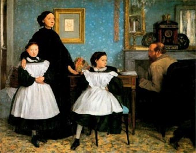 Sin embargo, las recientes muertes de Vernet, Delacroix e Ingres abrieron un hueco en el que pudo desarrollarse, de la mano de Manet y Degas, lo que Baudelaire denominó enfáticamente el "heroísmo de la vida moderna". La familia Bellelli (1858-1875, Museo de Orsay, París) surge de unos retratos de sus primas que Degas pintó durante su primera estancia en Florencia, y muestra un análisis visual de la familia en el que los caracteres de los personajes (la atenta e inquieta tía Laura, su esposo Genaro, las dos niñas), junto con la verosimilitud del mobiliario y los objetos personales, constituyen una composición realista, fiel testimonio de la vida moderna. La obra, sin embargo, puede entenderse también como una alegoría de la continuidad temporal familiar, pues el dibujo que cuelga de la pared representa al abuelo Degas, patriarca de la familia, mientras delante de él, la propia Laura Bellelli se encuentra embarazada; son cuatro y no dos -como parece a simple vista-, las generaciones plasmadas en el cuadro: el pasado alimenta al presente para proyectarse en el futuro, como ocurre en toda la obra de Degas.