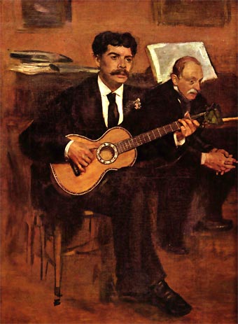 Degas fue un pintor clásico de la vida moderna que mantuvo una apasionada relación con la pintura del pasado: "Está muy bien copiar lo que uno ve; pero es mucho mejor dibujar lo que ya no ve, salvo en el recuerdo. Es una transformación en la que la imaginación y la memoria trabajan juntas. Sólo se reproduce lo que llamó la atención, es decir, lo realmente necesario. De este modo los recuerdos y las fantasías se liberan de la tiranía de la naturaleza. Por este motivo los cuadros hechos así, por un hombre que tiene una memoria cultivada y que conoce tanto su oficio como a los viejos maestros, son casi siempre obras notables." De hecho, muchas de las figuras que parece haber plasmado con objetividad paseando por alguna calle de París pueden reconocerse en obras de Ingres, Watteau o algún pintor desconocido de los siglos XVII o XVIII.
